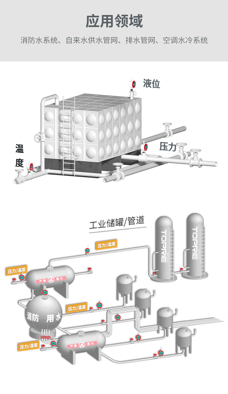 产品描述:万霖NB-iot智能压力表主要采用单片机系统采集运算在线测量并远传的压力仪表。它采用,高品质压力传感器芯,具有精度高、抗腐蚀性、抗震动、温漂小、稳定性好等;使用低功耗微处理技术,